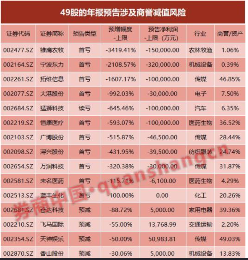操作建議:本周外圍股市圣誕休市,A股超跌、政策利好顯現下有望企穩、回升;50白馬藍籌持續調整顯示中線資金籌碼松動,市場結構性價值中樞再下臺階,近期注意回避業績風險,尤其是商譽減值對公司年報影響。創歷史新高的1.4萬億A股商譽,已切實地影響上市公司的年度業績;在已發布的年報業績預告中國,有49家公司認為存在商譽減值風險,將在2018年年底進行減值測試,一旦確認減值,將導致2018年業績下滑、轉虧或擴大虧損,商譽減值成為一些公司業績不確定性的一大來源。