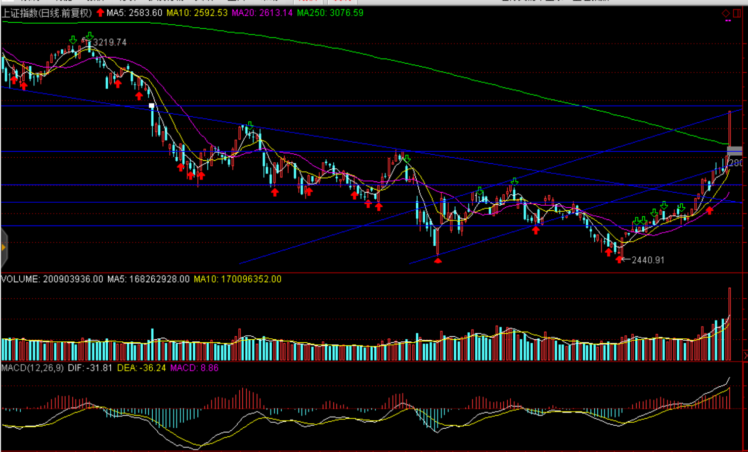 周一兩市大幅放量、強勢上揚,三大股指均以大陽報收。上證綜指收漲5.6%報2961.28點,創2015年7月以來最大日漲幅、深證成指漲5.59%報9134.58點、創業板指漲5.5%報1536.37點、上證50漲6.28%。兩市巨量成交1.04萬億元,環比大幅增加4182億元,刷新2015年11月以來新高;北上資金結束連續18日凈流入,凈流出7億元;盤面看券商、保險、銀行、5G通信、國產軟件、金融科技板及創投塊漲幅居前。整體看市場受到中美貿易磋商達成共識、金融供給側改革內外利好因素影響,場外資金加速進場,市場進入階段性亢奮。