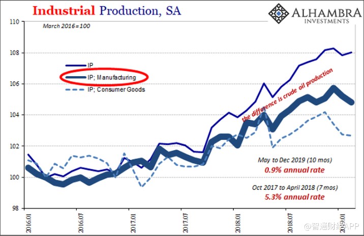 一個重要原因就是石油。美國國內能源生產繼續推動整個行業。根據最新的估計,美國工業生產在過去幾個月,即2018年12月、2019年1月和2月出現整體下滑。相比之下,德國已經增速放緩了至少9個月。