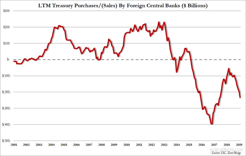 以比利時清算機構為主導,外國央行連續第五個月拋售美國國債(共計減1570億美元),以及過去11個月里有10個月減持(共計減2520億美元)。盡管這其中很大一部分被從私人賬戶購買所抵消。