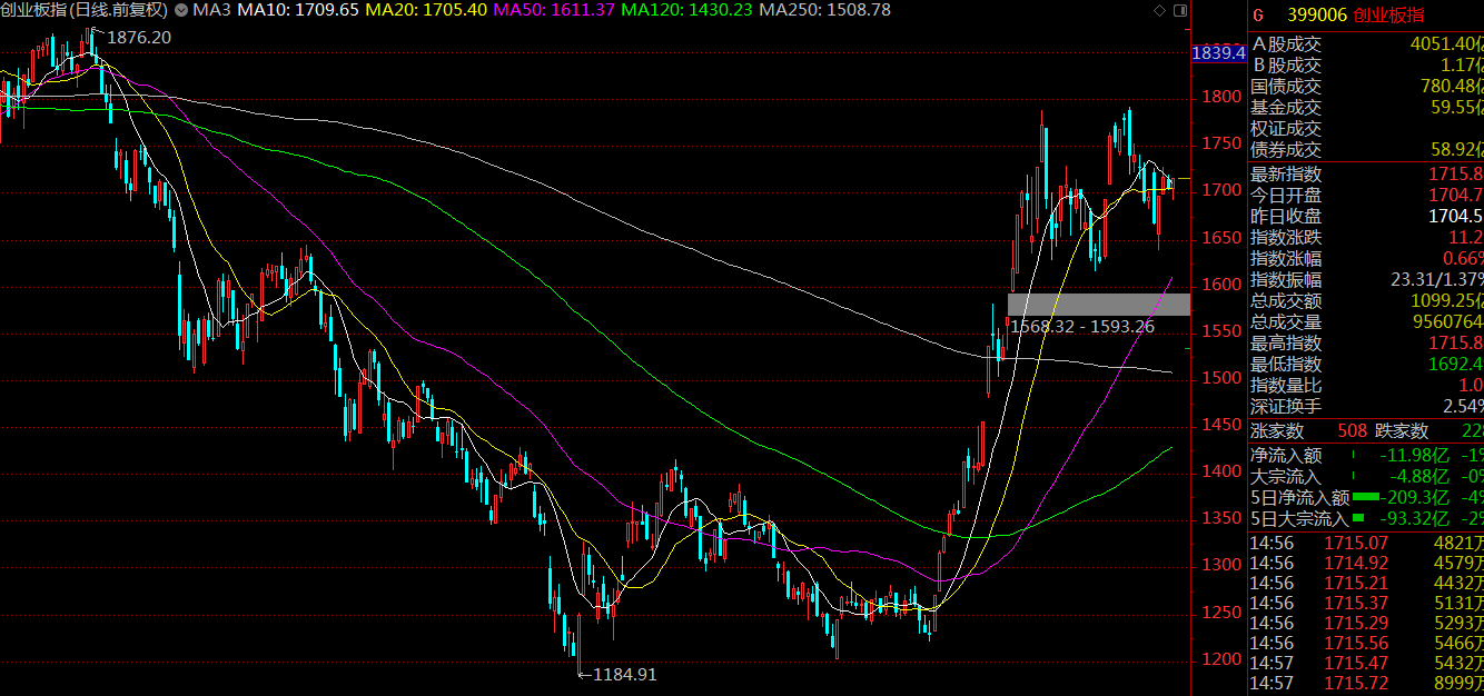 創(chuàng)業(yè)板這里走弱了已經(jīng),上周一、周二的調(diào)整打到了中樞下軌,這是一次警告,上拉后始終不能站上中樞上軌,是為弱勢(shì),本周關(guān)注1654點(diǎn)的支撐,謹(jǐn)防第三類賣點(diǎn)的出現(xiàn)。