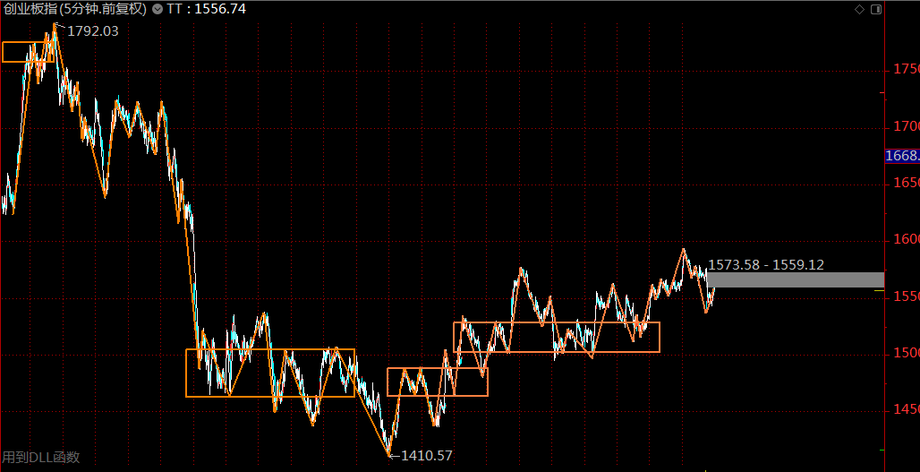 創業板這里仍然走的較為強勢,需要關注1530點的支撐,只要不跌回下方的三十分鐘中樞,都可視作是在構建第三類買點。結合滬指的情況來說,這里盤整背馳的概率更大,預期在下周初反彈后,創業板指數將會跌回三十分鐘中樞區間。