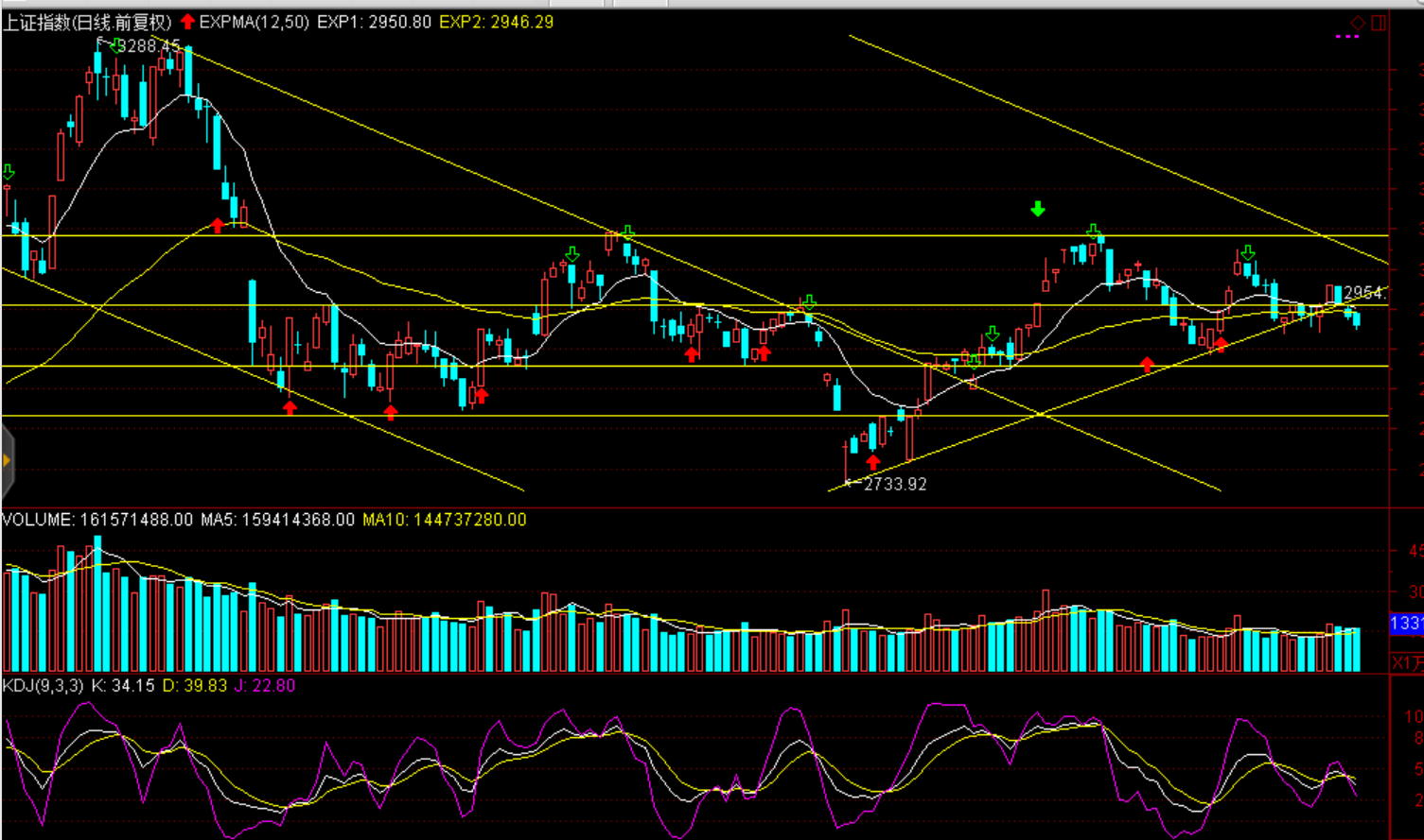 技術面:短期弱勢震蕩、滬綜指圍繞2950點一線上下波動。