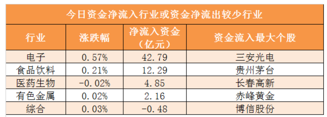 資金流向:28個申萬一級行業中,4個行業實現資金凈流入,其中電子行業凈流入42.79億元居首。
