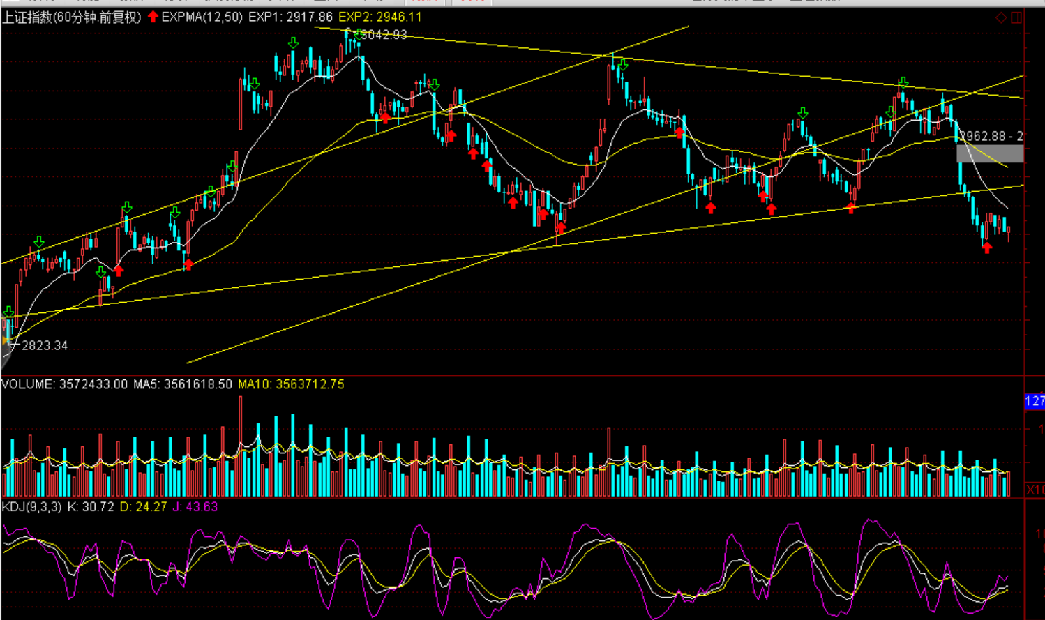 技術面:短期初現止跌信號,本周兩個交易日關注能否收復收斂三角形下軌(滬指2935點一線),如周五收盤站穩2935點則延續區間收斂三角形區間運行。