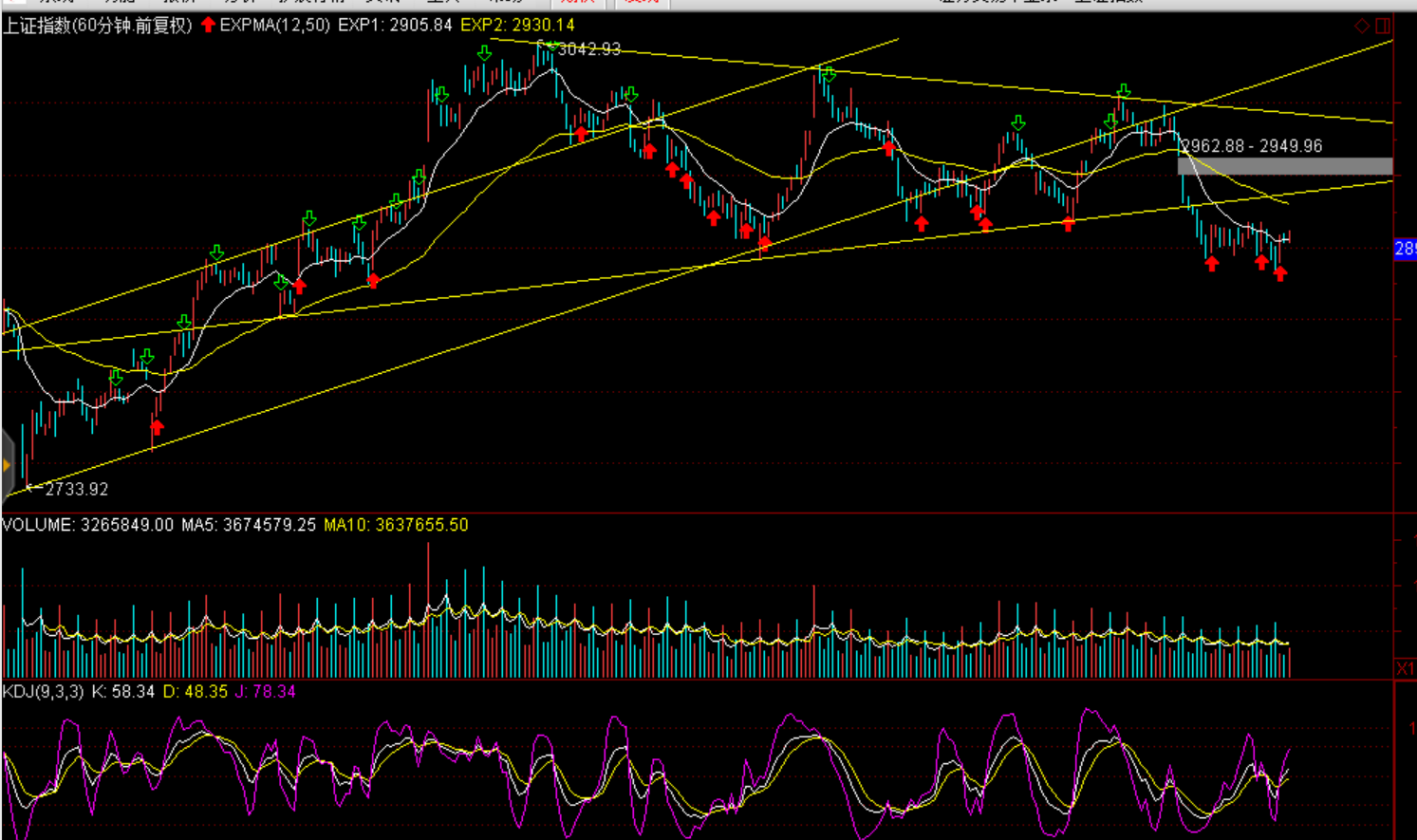 技術面:60分鐘KDJ低位金叉后,短期股指止跌反彈,小周期反彈挑戰9月16日以來收斂三角形下軌(滬綜指2935---2950點);創業板1700點一線存在一定壓力。