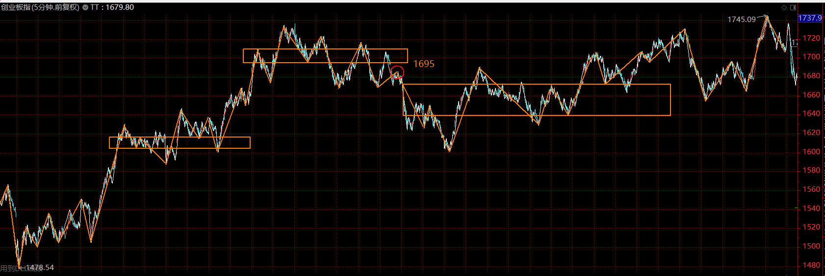 創(chuàng)業(yè)板這里則樂觀的多了,前高附近的中樞震蕩形態(tài),按歐奈爾的習慣來說,這個構型叫“杯柄”,一種強勢形態(tài)。可關注1600-1640的支撐區(qū)域,適當回補倉位。從兩個市場的比較來看,依舊傾向于后續(xù)大行情集中在創(chuàng)業(yè)板,有點類似2013年,創(chuàng)業(yè)板多頭走勢,主板還在探底。