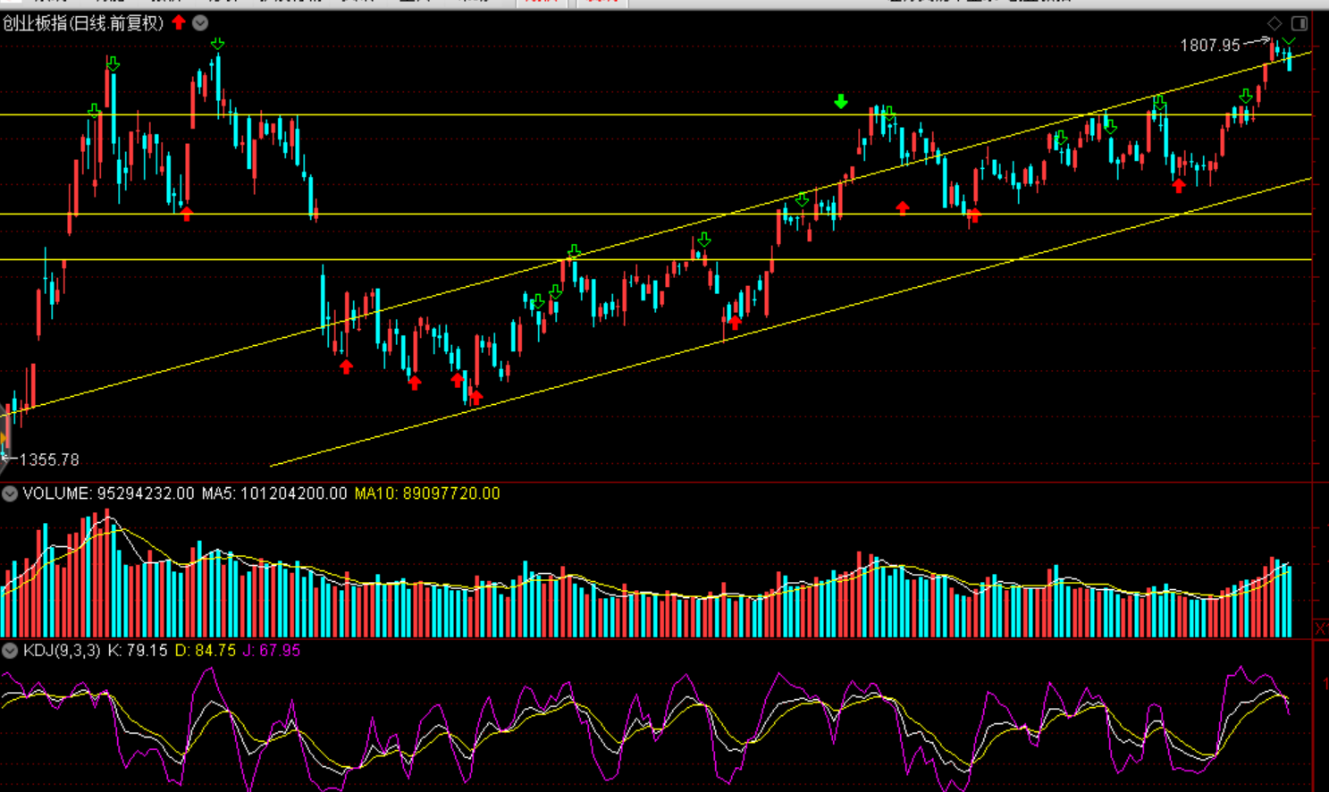 技術面:上周兩市股指沖頂受阻,本周面臨結構性調整;市場領漲指數創業板50(399673)受阻去年4、5月密集成交壓力,謹慎階段頭部出現。