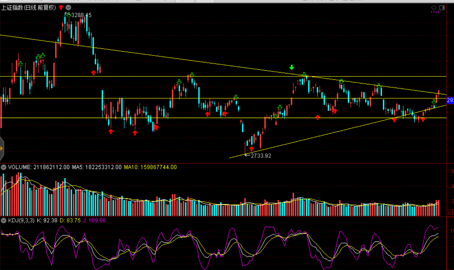周一兩市A股窄幅整理,上證指數(shù)收盤漲0.08%報2914.48點,連續(xù)三日收漲;深證成指跌0.02%;創(chuàng)業(yè)板指跌0.33%。兩市成交4608億元,較前一交易日放大511億元。