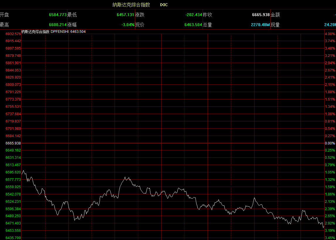 美股周一收市大幅受挫,創史上最差圣誕節前夜表現。道指以全日最低位收市,報21792點,跌653點或2.91%;標指收報2351點,跌65點或2.71%,自高位回落約兩成,技術上陷入熊市;納指收報6192點,跌140點或2.21%。