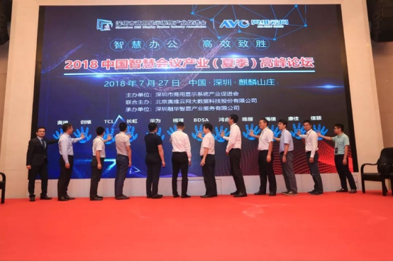 智慧會議夏季峰會隆重召開,其火熱程度遠遠超出主辦方的預期,現場到達的專業聽眾近500人,均來自平板會議顯示、系統集成商和終端應用的企業,會場氣氛熱烈。深圳商顯產促會會長/長虹集團副總經理郭德軒致歡迎辭,奧維云網、視源、思科、中新科技、青島海信等企業大咖分別從AI、創新、智能協助、行業未來、終端設備、行業博覽會等角度和方向作了智能會議相關主題演講或分享,精彩、新穎的話題將整個會議推向高潮。