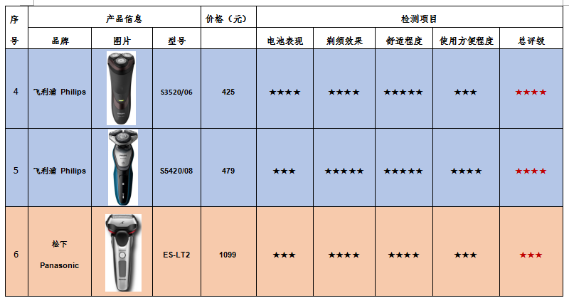 附:ICRT電動剃須刀比較試驗產品信息及綜合評級表