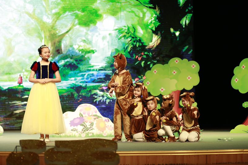 現場表演精彩紛呈,內容積極向上,形式豐富多彩,表演生動逼真,充分展示出選手們奮發(fā)向上的精神風貌,同時也展現了選手們的外語實際運用能力和自主創(chuàng)新精神。《三打白骨精》、《睡美人》、《冰河世紀》、《獅子王》、《皇帝的新裝》、《白雪公主和七個小矮人》、《小紅帽》、《馬良的神筆》……一個個經典的童話故事,惟妙惟肖的表演,生動的詮釋著故事里的每一個角色,把觀眾帶入一個個美麗的童話世界。