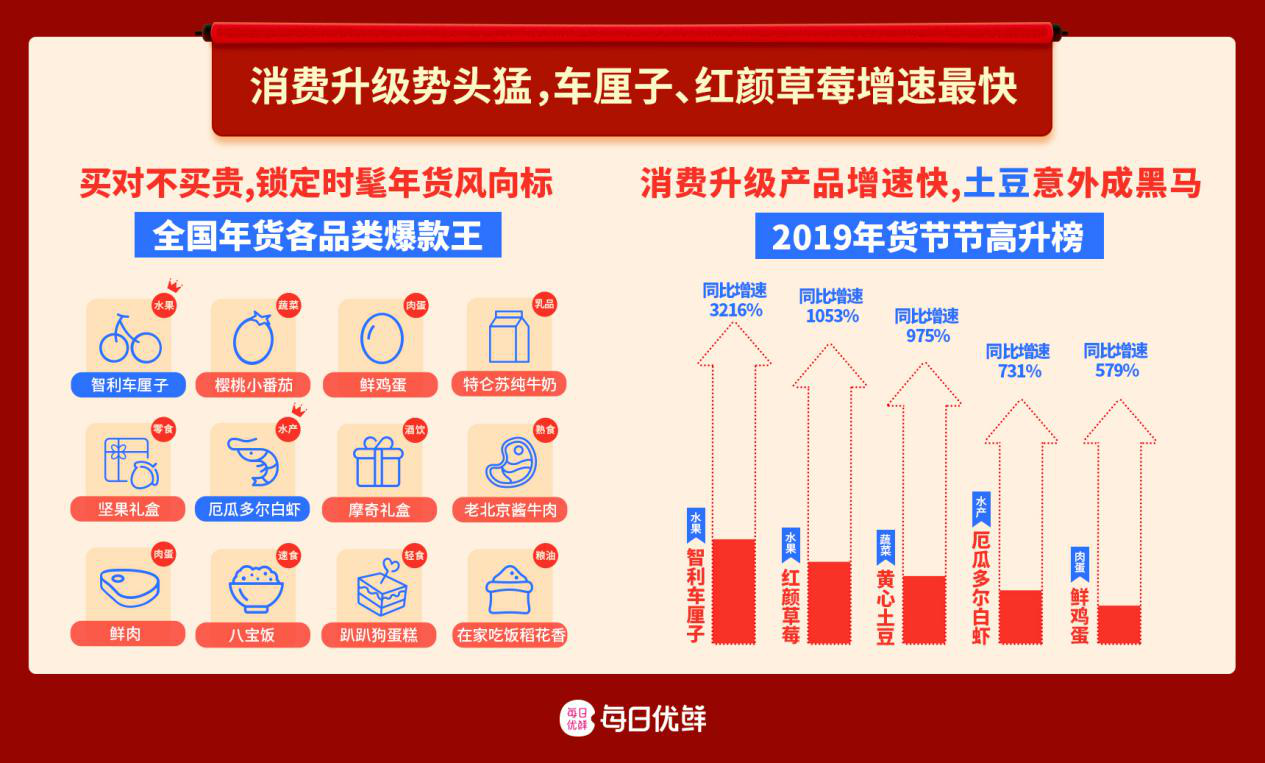 近日,生鮮電商每日優鮮發布了《2019生鮮年貨消費報告》,展示了80、90后年輕人成為線上生鮮消費主力軍后,與上一代截然不同的消費新趨勢。
