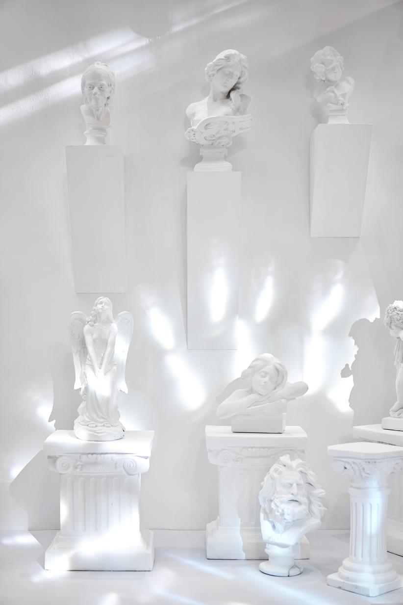 愛之全體驗靜態藝術展分為四個區域,分別對應 C-L-A-F(克拉時刻的英文),C對應白色區域,代表 C lassic(經典 ),在“C lassic”的區域中,洛杉磯郡藝術博物館標志地標-燈柱( Urban Light)與文藝復興的石膏像相結合,打造一片純凈又不失時尚的打卡區域。L對應紅色區域,代表Love(愛),設計了以“心電感應”的一堵墻面,描繪遇到“愛情”的場景,從“正常”的心電圖到遇見“愛”的怦怦心跳,純紅色的背景是打卡拍照的最佳地點。 A對應藍色區域,代表Aftertaste(回味),整體背景運用國際克萊因藍,形成撞色的沖擊感。利用香水瓶,打造了一個藍色的“氣味收藏室”。F對應黑色區域,代表Forever(永恒),運用霓虹燈管打造神秘時尚的氛圍,就像鉆石一樣在黑暗中閃爍,黑色背景成為許多人打卡點,仿佛電影橋段般的文字設計,非常適合還原電影場景。