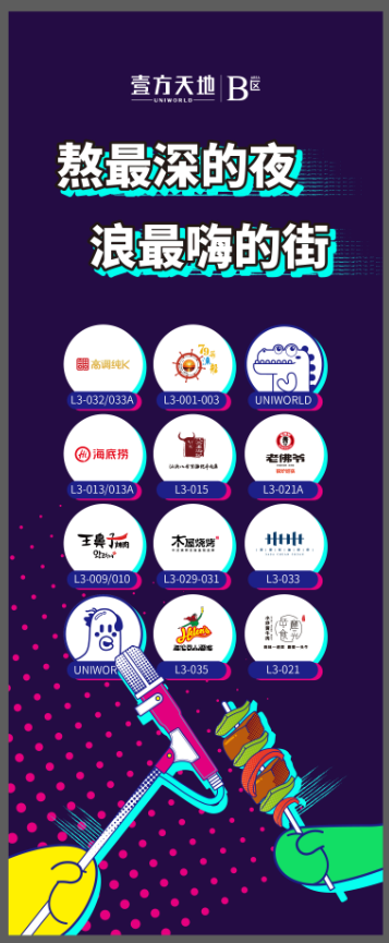 購物中心是城市的精華,也是生活方式的容器。B區洞察了當代年輕人的這一消費習慣,發力“夜經濟”,精心打造夜市街區——嗨FUN宵夜街。