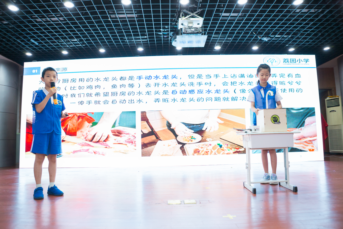 路演階段更是精彩紛呈,如:荔園小學通新嶺校區的“廚用智能感應水龍頭”、明德實驗學校碧海校區的“天臺智能晾曬房”、上步小學的“智能鼠標”、華富小學的“室內照明監測盒”等眾多創意新奇的作品。