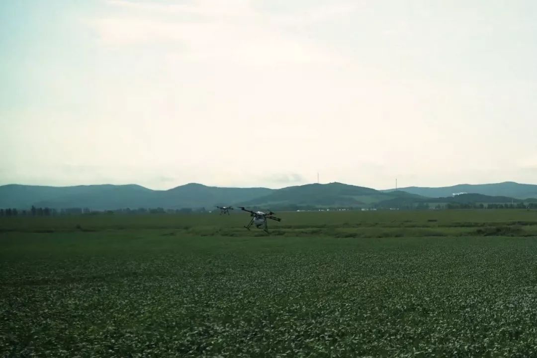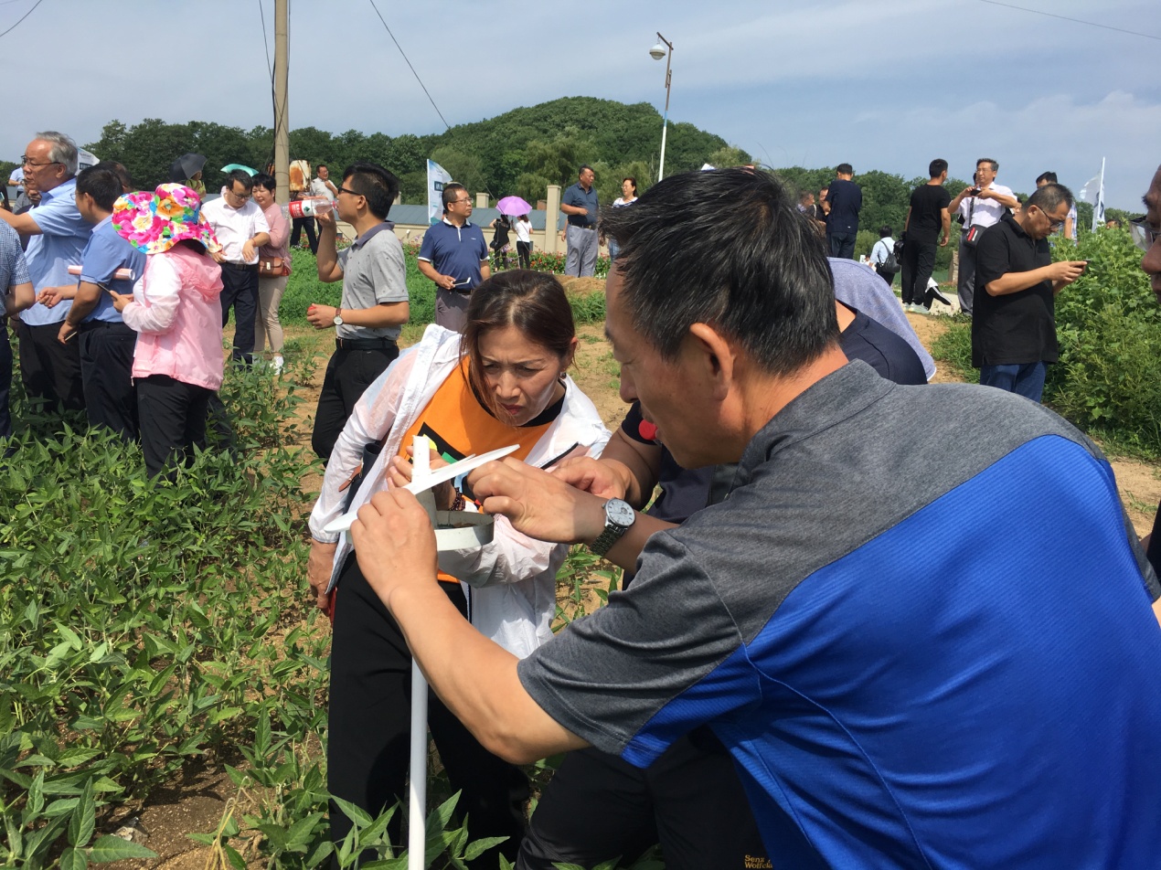 開班儀式前,參會領導、專家及各省市參會代表現場觀摩位于敦化市鴻發現代生態農場的全國生物食誘劑防控大豆食心蟲技術試驗示范區,在示范區現場觀摩無人機噴灑生物食誘劑。