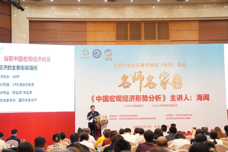 深圳新聞網2019年9月18日訊 9月17日下午,深圳市社會組織總會“名師名家講學堂”在五洲賓館華夏廳再次與大家見面。總會聯合黨委書記陳亞凱與近500名深圳社會組織、企業主要負責人一起,聆聽匯豐商學院創院院長海聞教授主講《中國宏觀經濟形勢分析》。