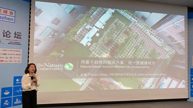 大自然保護協會深圳項目官員張薰予在高峰論壇現場分享海綿城市項目