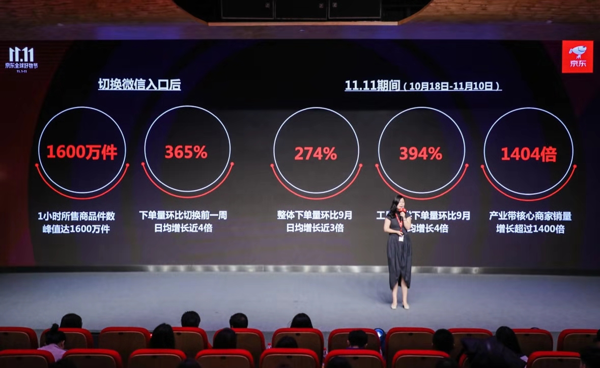 在京喜11.11期間(數據從10月18日截止至11月10日),整體下單量環比9月日均增長274%,工廠直供下單量環比9月日均增長394%,產業帶核心廠商訂單量提升1404倍。