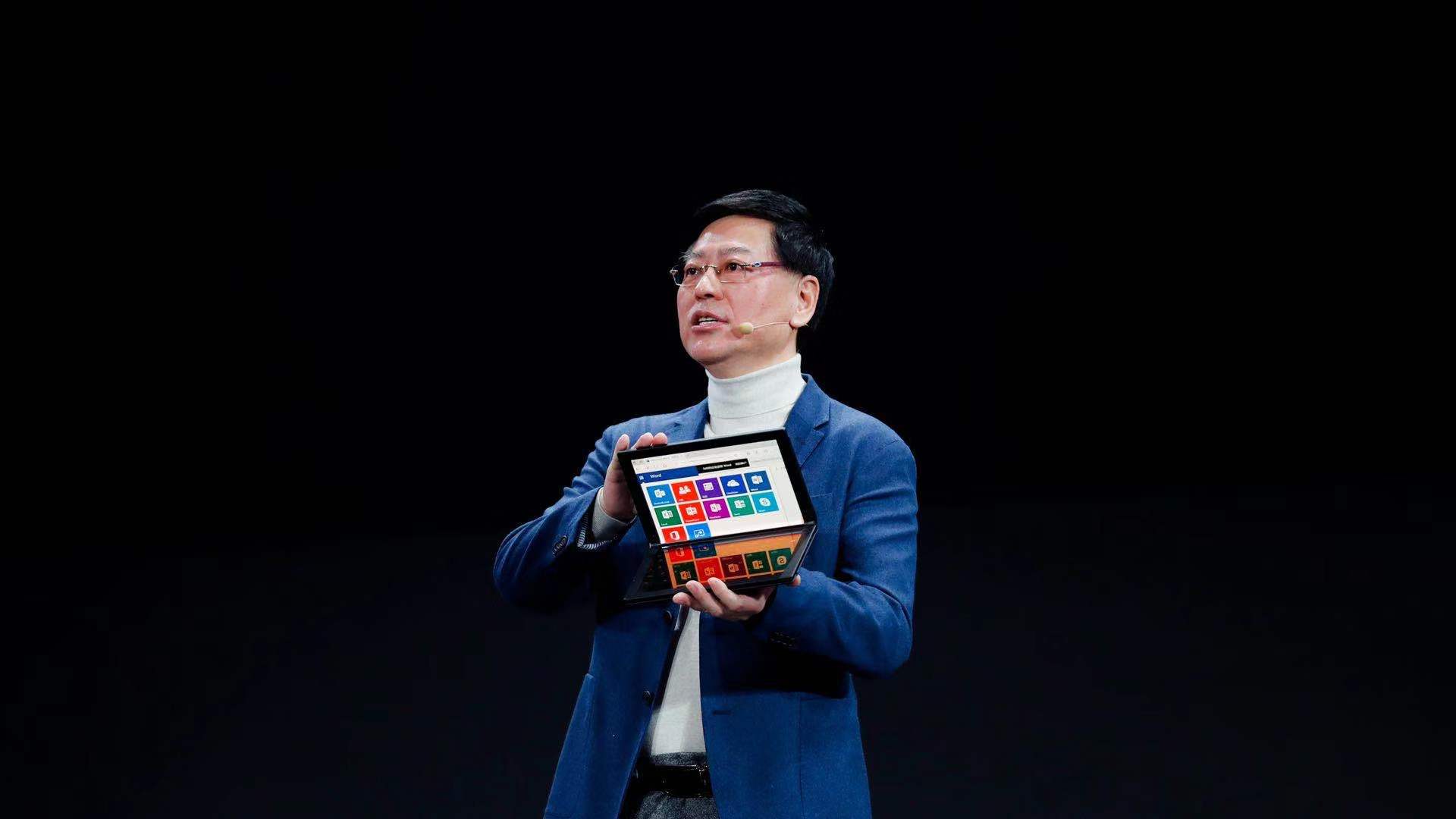 楊元慶現場展示全球首款折疊屏筆記本電腦ThinkPad X1