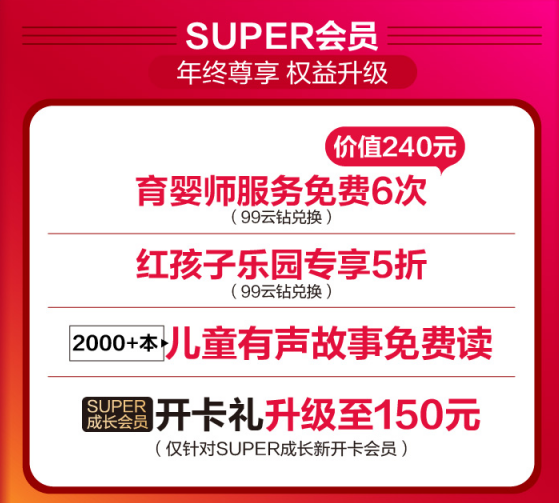 即日起,上蘇寧易購參與蘇寧紅孩子“年終狂歡搶購盛典”活動,10點、15點、20點整點搶2019元母嬰神券,進入蘇寧拼購小程序最高可領取8元膨脹紅包。全國近200家蘇寧紅孩子門店還推出滿30元減30元神券限量砍,99云鉆免費兌換育嬰師服務、紅孩子樂園5折優惠等。