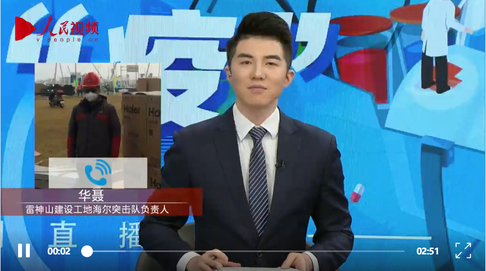 深圳新聞網2020年2月12日訊 近日,人民網、人民視頻特別直播節目《人民戰“疫”》在雷神山現場連線了來自海爾的突擊隊,向大家展現了一群晝夜駐扎建設一線的與時間賽跑者。