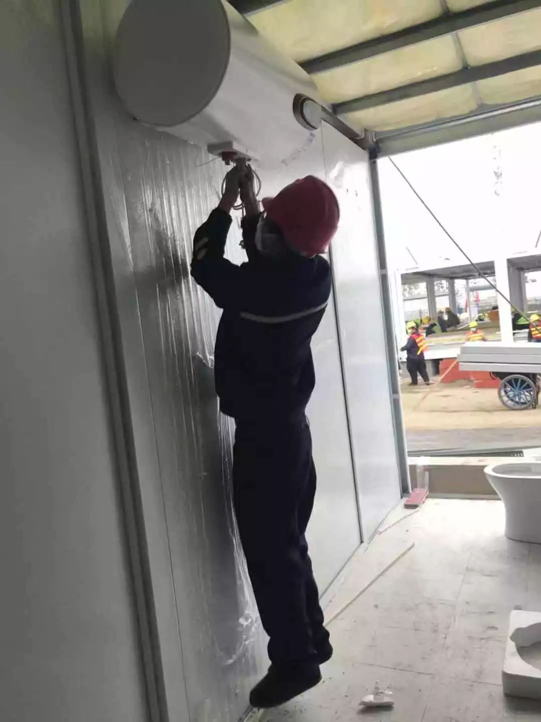 據了解,雷神山醫院工地上正在24小時不間斷地施工,現場每時每刻都在變化。目前,雷神山醫院的部分房間正在進行內部裝修,海爾突擊隊的隊員在現場接受項目的統一指揮,2月4日,300臺熱水器設備按計劃全部安裝完成。