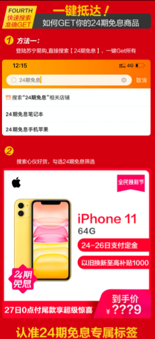 0首付0利息0手續(xù)費(fèi)!24分期免息,只要正常還款,不會(huì)影響征信。從2月27日到3月16日,上蘇寧購(gòu)家電、家裝、手機(jī)等品類(lèi),享24期分期免息。不用再等雙十一,羊毛黨、體驗(yàn)黨、等等黨、愛(ài)卡黨收好攻略,提前加購(gòu)。