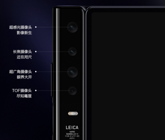 此外,在拍照上,華為Mate Xs繼承了華為在拍照方面的一貫優勢,其前后攝鏡頭合二為一,配置一枚4000萬像素超感光攝像頭(廣角,f/1.8光圈)、一枚1600萬像素超廣角攝像頭(f/2.2光圈)、一枚800萬像素長焦攝像頭(f/2.4光圈,OIS),以及一枚3D深感攝像頭的超感光徠卡四攝影像系統。全面滿足用戶手機攝影多場景需求。(常軍平)