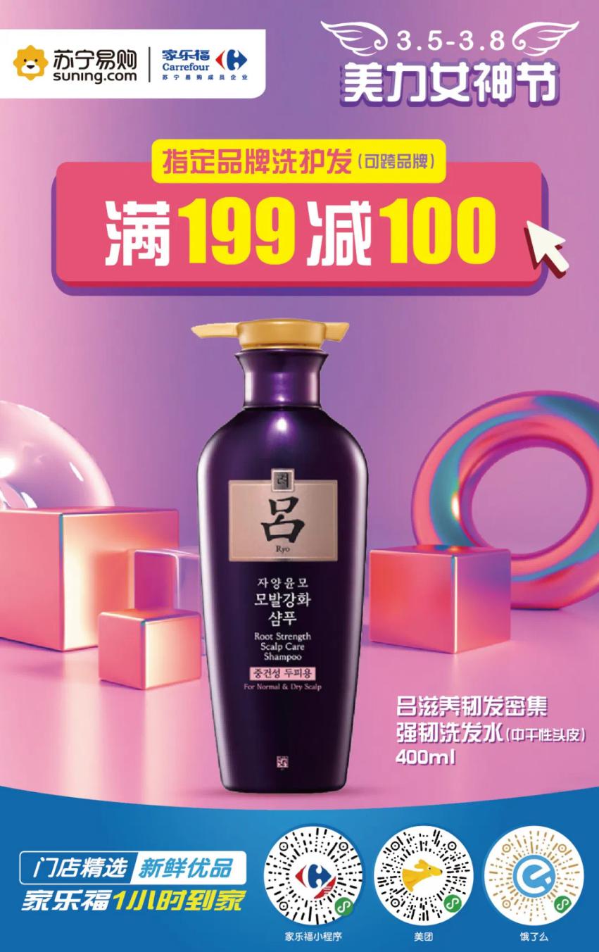 疫情期間,除了護膚,仙女們的一頭秀發也萬萬不能忽視!小本本記好了,家樂福指定品牌洗護發滿199立減100元。