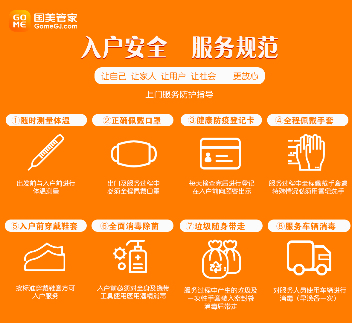 第二天上午,國美管家的售后服務(wù)工程師唐勝(化名)在小區(qū)測溫登記后按響了李女士家的門鈴,向李女士出示了“健康防疫登記卡”,拿出體溫槍對準(zhǔn)手腕、額頭分別測溫,均顯示正常。在門外唐勝還更換了新的口罩、佩戴防護(hù)手套、穿戴好鞋套,在自身全面消毒后才進(jìn)入李女士家中。