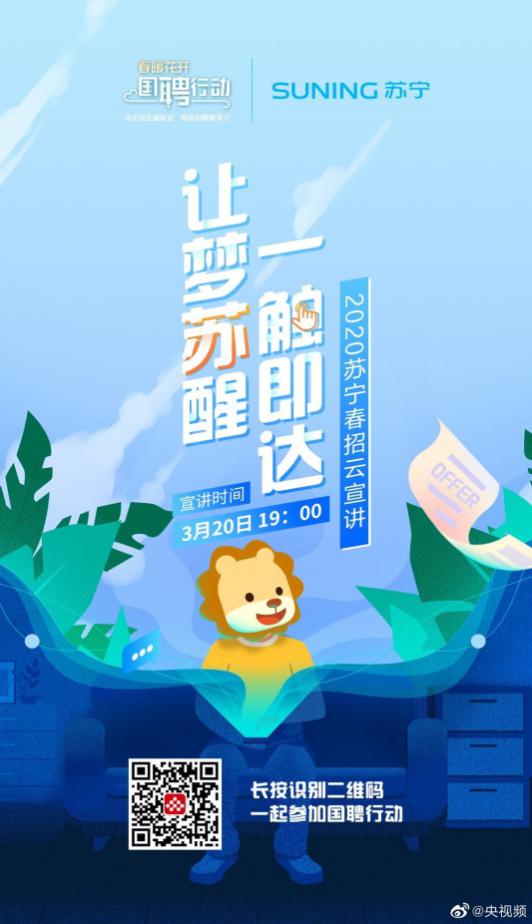 作為與民生、就業密切相關的大型零售企業,蘇寧早在2月8日便啟動了無接觸春招,3月20日,蘇寧更是通過央視頻國聘行動開啟線上宣講。目前,線上面試與offer發放正在持續進行中。