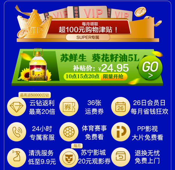 通過登陸蘇寧易購APP,搜索關鍵詞“白衣天使”,進入自動申領頁面。 SUPER會員是蘇寧為用戶打造的專屬會員體系,能夠滿足“白衣天使”們視頻娛樂、生活購物、服務等全場景的需求。