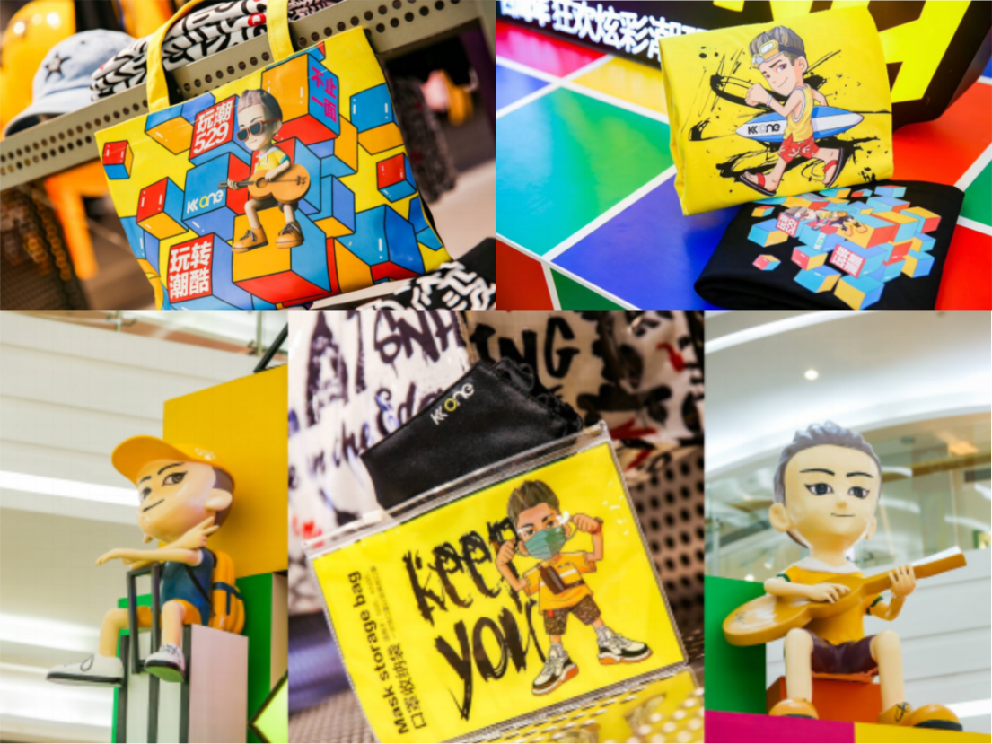 KK ONE原創IP ONE仔也進行了全新亮相,從去年C位出道的練習生進階為今天活力全開的潮流玩咖,ONE仔和所有追求個性和卓越的朋友一起成長,一起見證了2019年的街潮活動:拉闊籃球賽、不插電音樂賽、摩登實驗室、鐘漢良見面會等活動的精彩,一起體驗創新放肆玩法和玩潮“魔”力。ONE仔和熱愛生活的潮咖們一樣,喜歡運動,愛音樂,愛旅行。目前,ONE仔衍生的定制周邊皆陳列于本次炫彩“魔”方展中,并作為定制禮包贈送給粉絲和顧客。據悉,未來KK ONE會挖掘更多的IP玩法,鮮活ONE仔形象,為潮咖們提供更多的玩潮互動場。