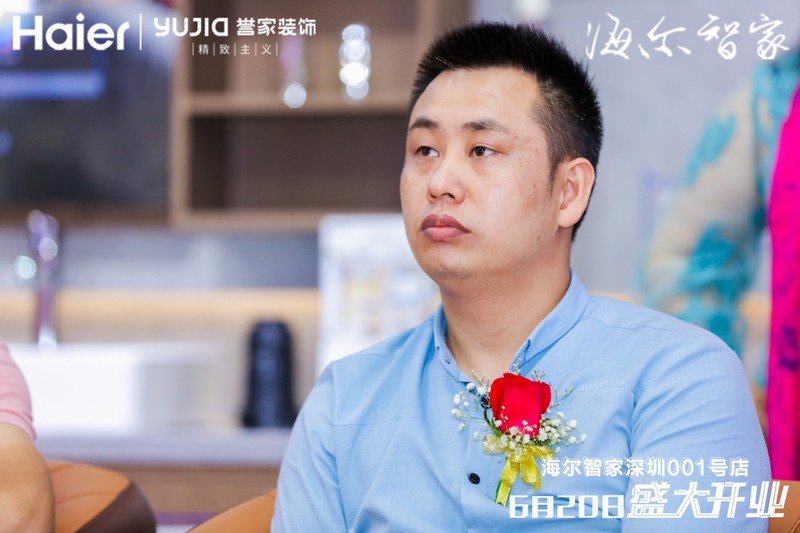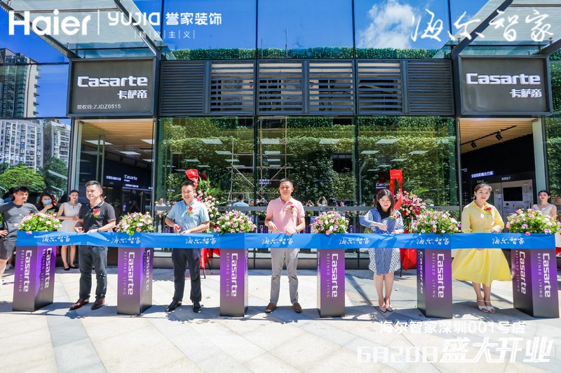 海爾智家深圳分公司總經理褚健中、星河產業集團資源整合招商總監張冰、譽家裝飾總經理謝宇兵、和行投資公司董事長李向鵬、深圳家裝家居行業協會秘書長向怡菲出席了“深圳海爾智家001號店”開業儀式并進行了剪彩。