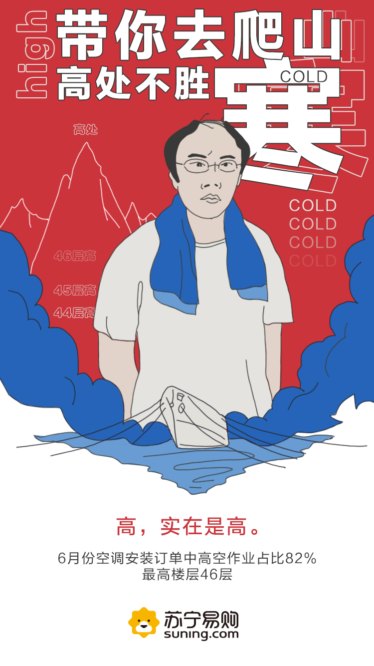 夏季都說“空調續命”,也要感謝為我們帶來續命工具的空調安裝師傅們。據蘇寧易購消暑大數據顯示,6月份空調安裝訂單中高空作業占比82%,最高樓層46層。