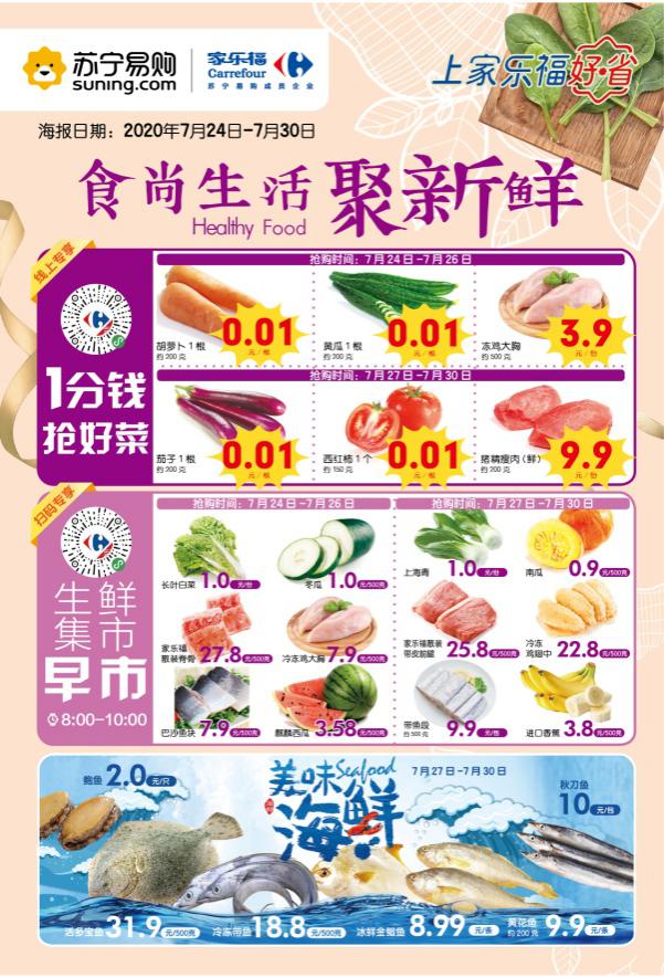 見圳客戶端·深圳新聞網(wǎng)2020年7月24日訊 為慶祝進入中國市場25周年,家樂福為線上用戶帶來專屬福利—“1分錢每天搶好菜”。即日起,消費者只需支付1分錢,即可輕松為全家?guī)Щ匾坏澜】岛貌耍p松享受便捷的品質(zhì)消費。