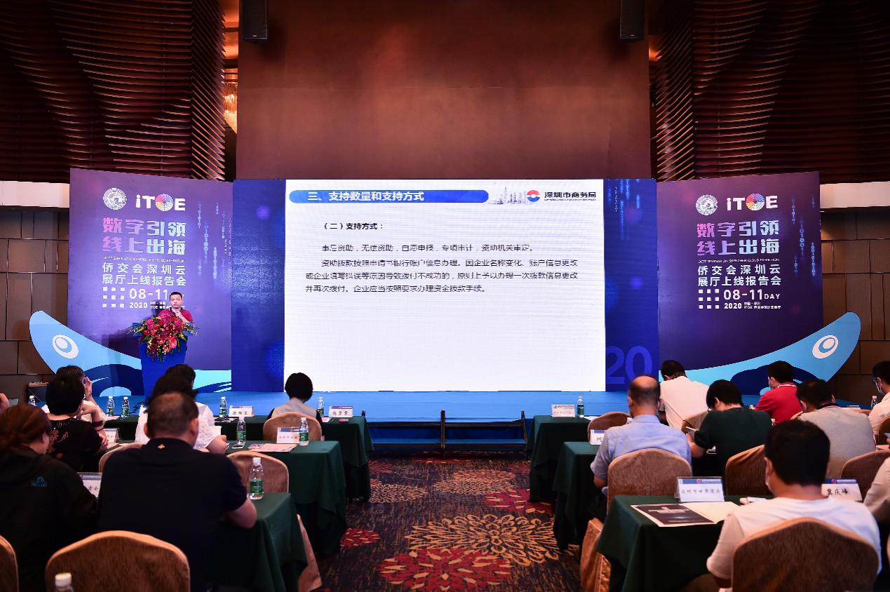 見圳客戶端·深圳新聞網(wǎng)2020年8月12日訊(記者 張俊達)昨天,“數(shù)字引領(lǐng)?線上出海”僑交會深圳云展廳上線報告會在深圳綠景酒店三樓會議廳成功召開。以"數(shù)字引領(lǐng)?線上出海,提升企業(yè)國際競爭力"為主題,本次報告會重點展示“ITOE僑交會深圳云展廳”創(chuàng)新會展模式、解讀疫情之下外貿(mào)中小企業(yè)如何通過數(shù)字化轉(zhuǎn)型,并帶來2020年度最新中央外經(jīng)貿(mào)發(fā)展專項資金政策宣講。深圳多個商會、行業(yè)協(xié)會,以及僑企、港企、深圳外向型企業(yè)、展覽公司近200名代表參加報告會。