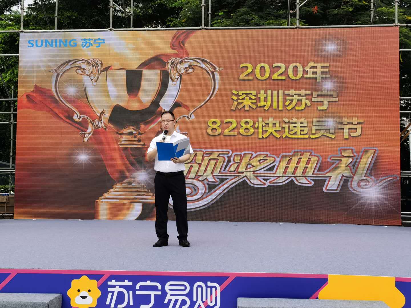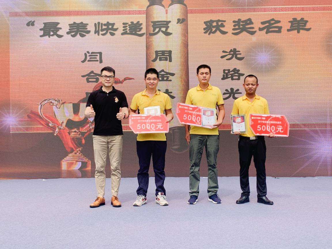 粵港蘇寧快遞員頒獎慶典于28日上午10:30舉行,蘇寧易購深圳大區家電公司總經理彭俊、深圳大區物流公司總經理楊保及相關負責人等出席了此次活動。慶典活動上,彭俊表示,“本屆快遞員節主題為“進無所懼”,喻意蘇寧快遞在2020年不懼風浪、一往無前。今818,集團全新升級了“專注好服務”的品牌主張,變革、創新、引領,服務更是物流集團的核心理念,快遞員節既為了致敬拼搏在一線全體遞員們,也是表達蘇寧快人堅定迎接挑戰、開啟新征程的勇氣。”