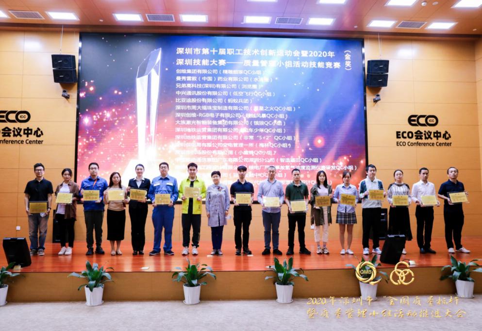 現場,獲得深圳市第十屆職工技術創新運動會暨2020年深圳技能大賽——質量管理小組活動技能競賽金獎的小組深圳市中興通訊股份有限公司低空飛行QC小組、中國華西企業有限公司冠澤金融中心QC小組為大家作了精彩發表展示。由市總工會基層組織建設和經濟工作部二級調研員張麗英宣讀“深圳市第十屆職工技術創新運動會暨2020年深圳技能大賽——質量管理小組活動技能競賽”結果的通報,并為16個金獎小組進行授牌,市政協常委、市質量協會執行會長李榕,市科協機關黨委副書記、紀委書記劉衛東,市婦聯組聯發展部二級調研員嚴俊勇,工商聯會員部部長劉傳分別為32個銀獎和32個銅獎小組進行授牌。