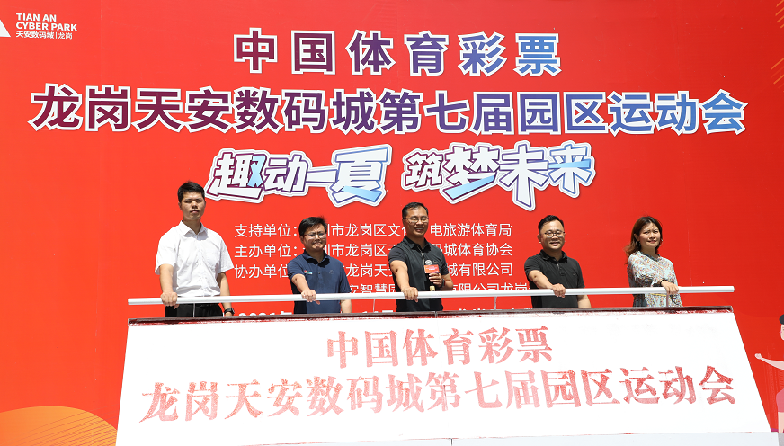 本屆運動會以“趣動一夏筑夢未來”為主題,由深圳市龍崗區文化廣電旅游體育局支持,深圳市龍崗區天安數碼城體育協會主辦,深圳市龍崗天安數碼新城有限公司、深圳天安智慧園區運營有限公司龍崗分公司協辦。深圳市龍崗區文化廣電旅游體育局副局長李震、龍崗天安數碼城副總經理陳文鑫、龍崗區文化廣電旅游體育局體育事業促進科副科長任翠華、天安智慧園區運營有限公司總經理助理龍崗分公司總經理梁義榮、龍崗天安數碼城產業事業部總監白麗等領導嘉賓為本屆運動會推桿啟動開幕。