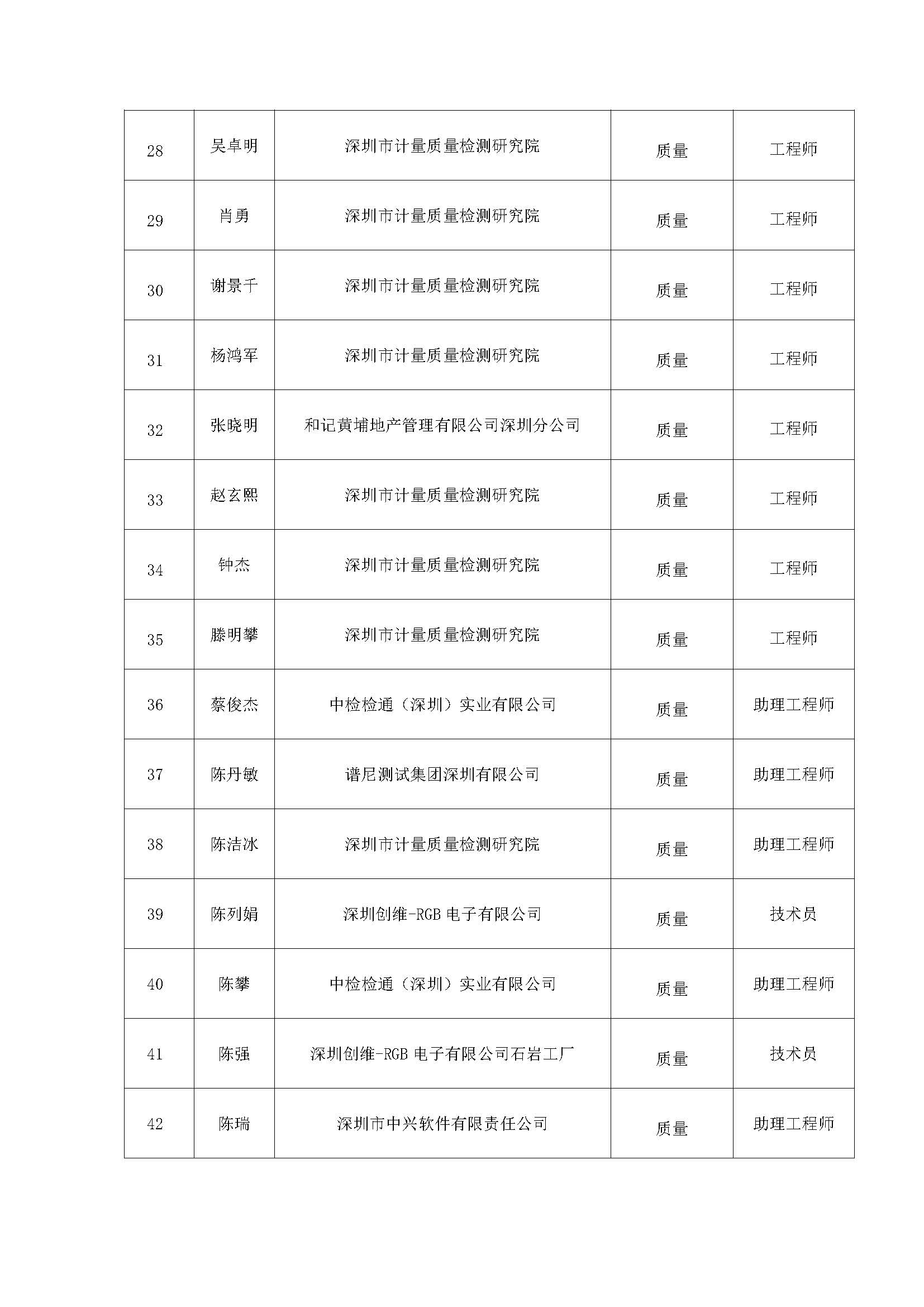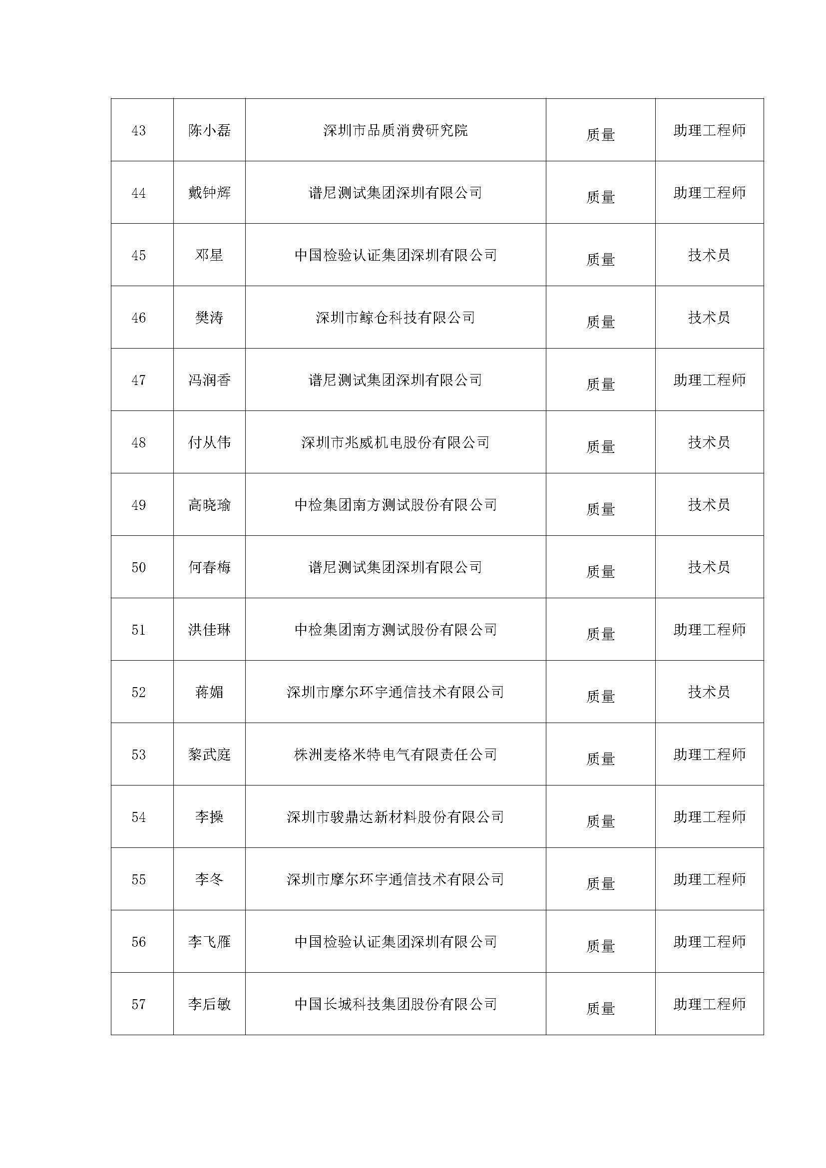 附件:2020年度深圳市質量專業高、中、初級職稱評審通過人員公示名單