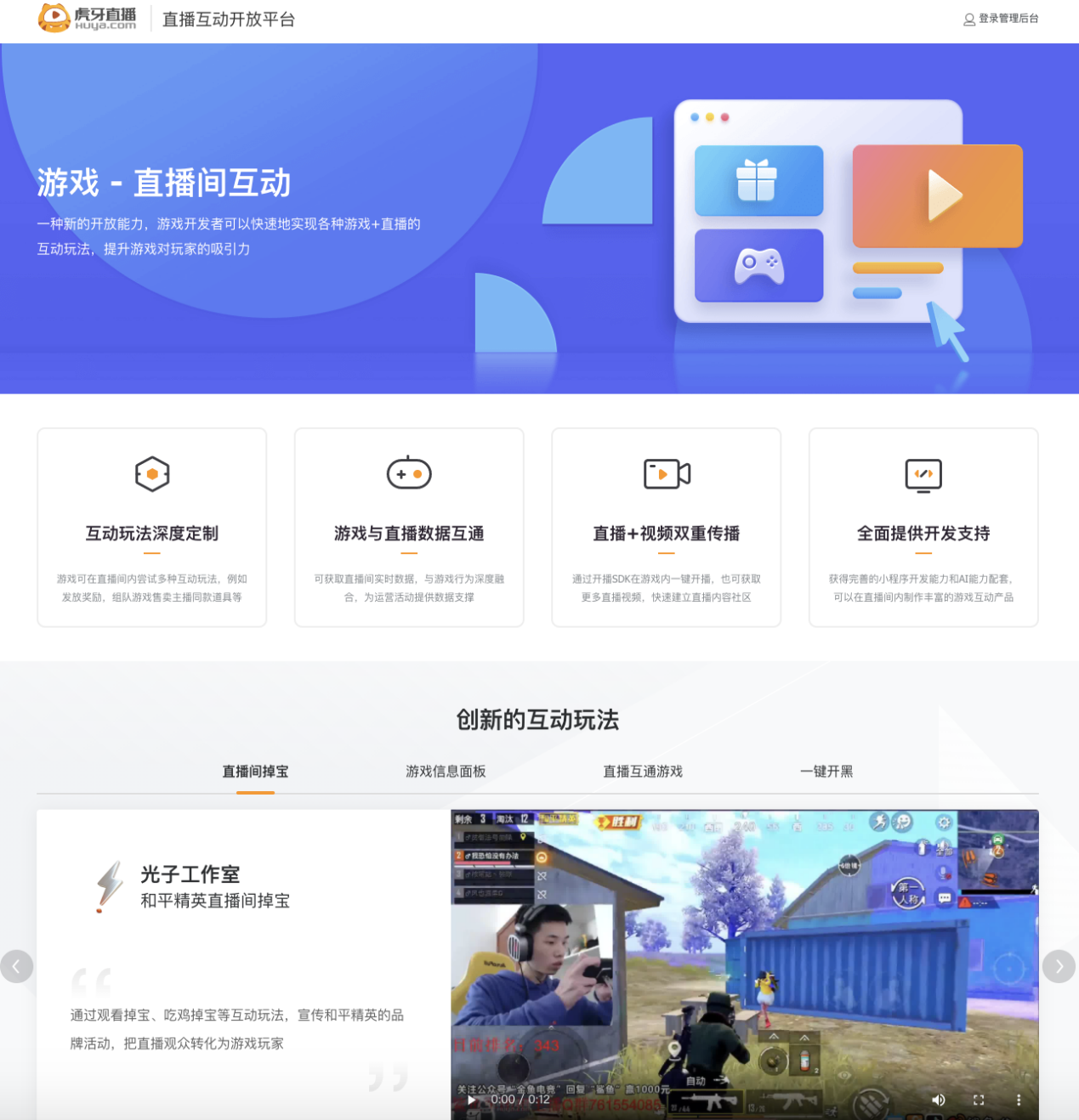今年3月,虎牙直播互動開放平臺正式上線。通過開放平臺提供的七大核心開放能力,游戲廠商可以獲得完善的小程序開發能力和AI能力配套,快速實現各種“游戲+直播”的互動玩法。