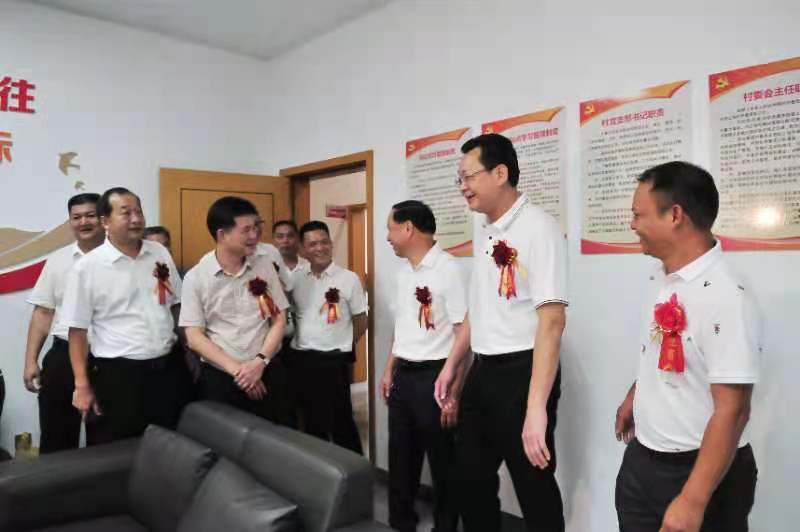 彭志康村支書、安宏基控股集團彭康良董事長、五云鎮黨委蔡曉松書記、縣委張永慶副書記分別進行熱情洋溢的講話,寄予良好的祝愿,并共同為大樓揭牌。
