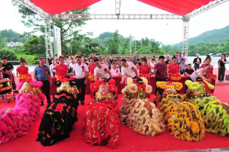鄉賢代表彭康良、彭康輝、彭志響、彭細過、彭宗良、彭民輝為醒獅點睛。爾后,醒獅采青表演、醒獅送對聯后,硁下村黨群服務中心落成典禮禮成,出席嘉賓進入服務中心參觀。
