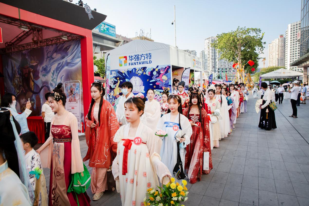 為了提升夜間經濟業(yè)態(tài),節(jié)展期間電玩節(jié)組委會在每天的16時至21時共計舉辦了三十余項不同類型的賽事活動,包括COSPLAY大賽、紅白歌會、國風國潮大賽、“第四屆王者榮耀全國大賽城市賽”“英雄聯(lián)盟 ·金鏟鏟之戰(zhàn)線下體驗派對”、主街游戲競技場、COSPLAY巡游、漢服巡游、國風走秀等。同時還邀請知名COSPLAY團、人氣COSER熊祁、唯安、組合844樂隊、七朵家族舉辦了專場見面會和簽售會,吸引了大量觀眾駐足圍觀,臺上臺下熱情互動,掀起陣陣活動高潮,以沉浸式的體驗帶動新消費,打造深圳夜間消費新地標。