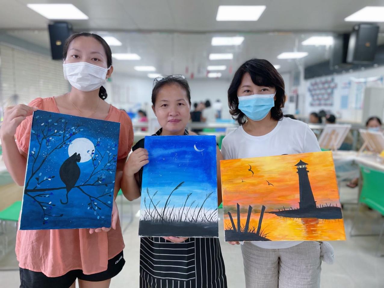 溫馨的環境,融洽的氣氛,專業的老師,友好的同伴,媽媽們度過了一個個美好的下午。盡管媽媽們都是零基礎,但全情投入的專注,不僅釋放了壓力,更是打開了一扇通往油畫藝術的小窗。愛自己,愛生活,才能更好地愛家人,本次油畫班持續開展約兩個多月,媽媽們更好地享受屬于自己的油畫時間,學有所獲。