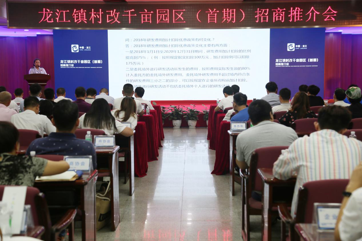 順德區龍江鎮村改千畝園區(首期)招商推介會8月15日在龍江鎮政府舉行。